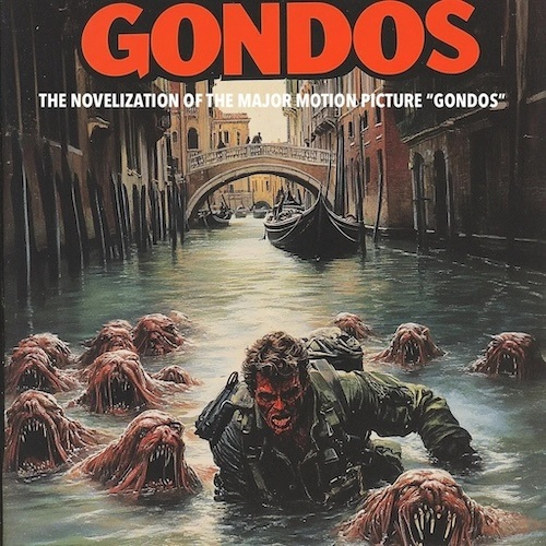 Last year, I wrote a novel—just to see if I could do it—and wound up having loads of fun. It’s called Gondos: The Novelization of the Major Motion Picture “Gondos.” (When sea monsters invade the Venice canals, it’s up to an ad-hoc team of scientists, soldiers of fortune and traditional gondoliers to battle them back—in militarized, Batmobile-style gondolas called . . . “gondos.”)